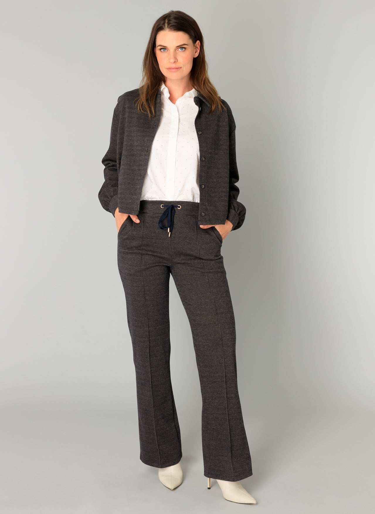 This lovely pull-on trouser from Yest comes in a small check and sports a drawstring and pockets for ease and convenience. The mix of polyester, viscose and elastane makes the pants supple and comfortable. Pairs nicely with the matching jacket.
