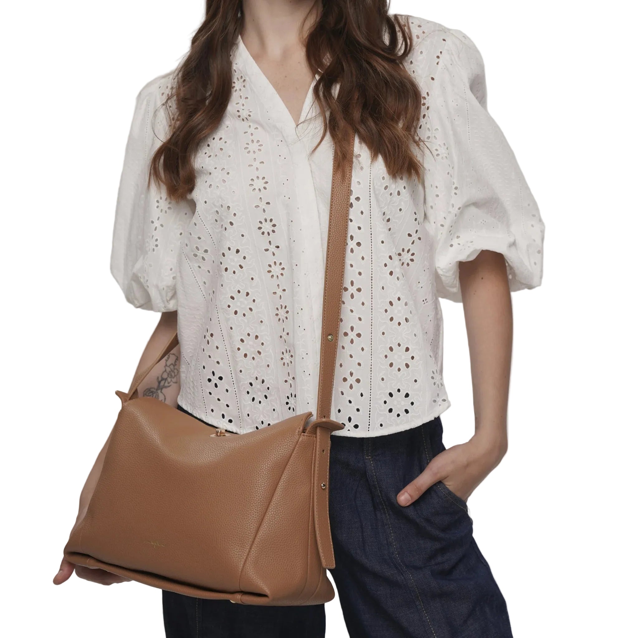 The London crossbody is an on-trend medium-sized vegan leather bag featuring a unique sliding strap that easily converts from a shoulder bag to a crossbody for effortless versatility. Crafted from premium pebbled vegan leather, it offers a roomy main compartment to keep your essentials organized in style. Chic, functional, and cruelty-free — the perfect everyday companion.