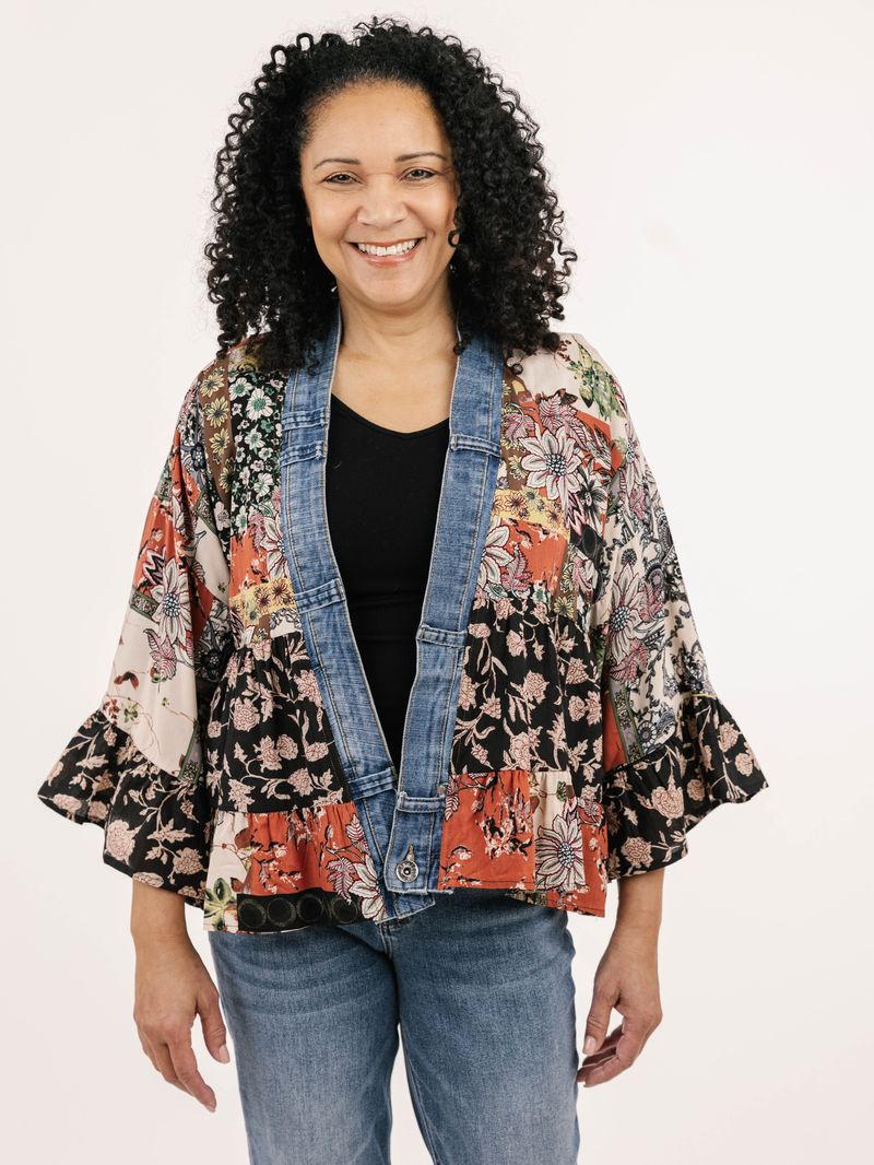 The prints are limited runs to be mindful of limiting our fabric waste. We have combined deconstructed vintage denim and upcycled them into many of the designs, this diverts it from the landfills and gives it new life.