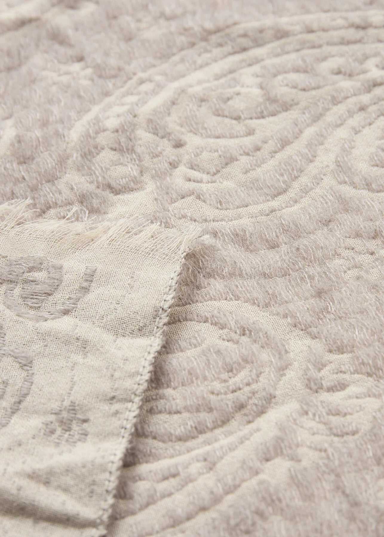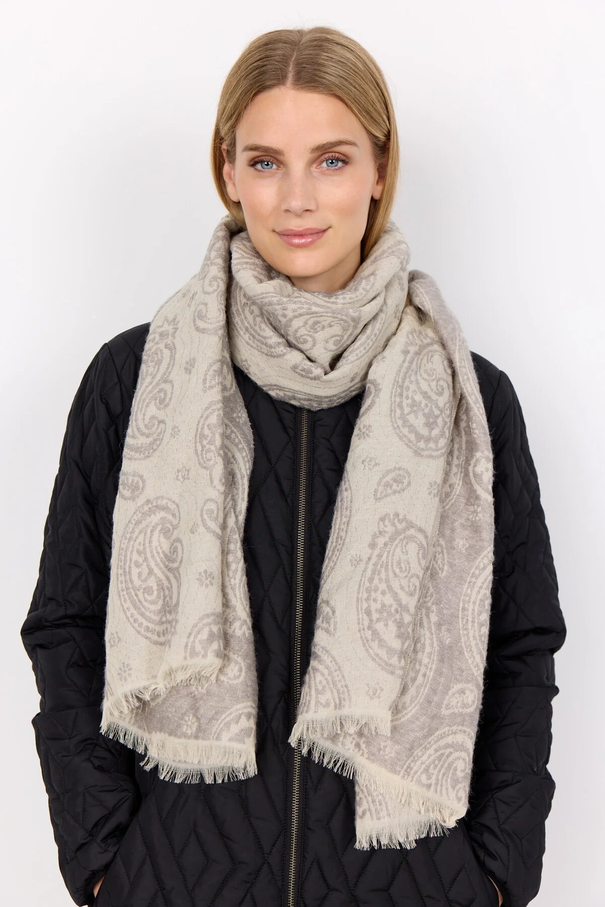 SC-INGELISE 1 is a lovely scarf in a blend of 70% Acrylic, 20% Modal, and 10% Wool. This scarf features a traditional paisley pattern with fringe detailing at the edges, adding texture and elegance to the design. Pair this accessory with a structured jacket or a tailored shirt for a refined look.
