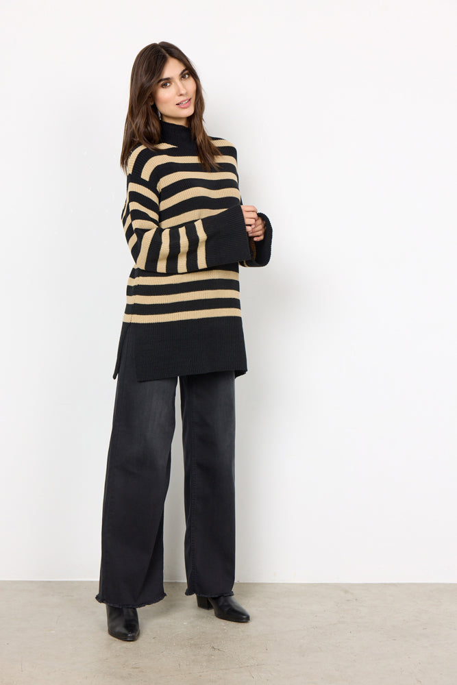 SC-Julia 6 is a classic yet casual pullover made from a nice blend of cotton and acrylic. This lovely oversized pullover has a high neckline, long sleeves, a loose fit and a striped print. Style this lovely pullover with a pair of trousers, some ballerinas and your favourite shoulder bag for a stylish look.